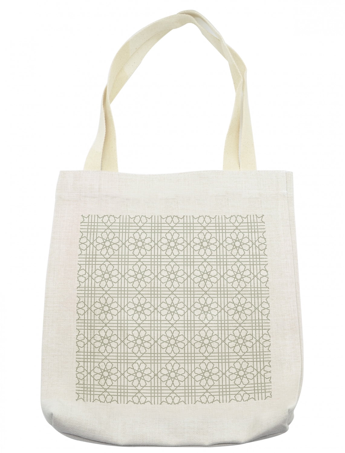 Grey Tote Bag Pattern Mosaic Tiles With Moroccan Floral Traditional Symmetric Work Of Art Print Cloth Linen Reusable Bag For Shopping Books Beach And More 16 5 X 14 Cream By Ambesonne